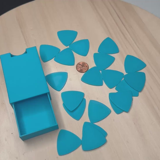 This Equilateral Triangle Guitar Pick Set with Travel Case is designed for guitarists who prefer a larger pick shape with three identical tips for extended use. Whether you play acoustic, electric, or bass guitar, these triangle picks provide comfort, durability, and smooth tone. The included compact travel case keeps your picks safe, organized, and always within reach.