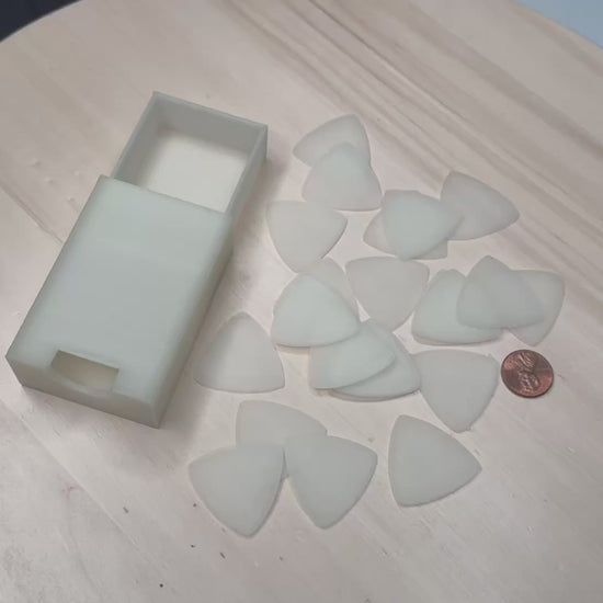 Light up your music with the Glow in the Dark Equilateral Triangle Guitar Pick Set (1mm) — designed for bold tones, smooth strumming, and effortless playability! Featuring three equal edges, this triangle pick lets you rotate between tips for longer life and consistent performance.