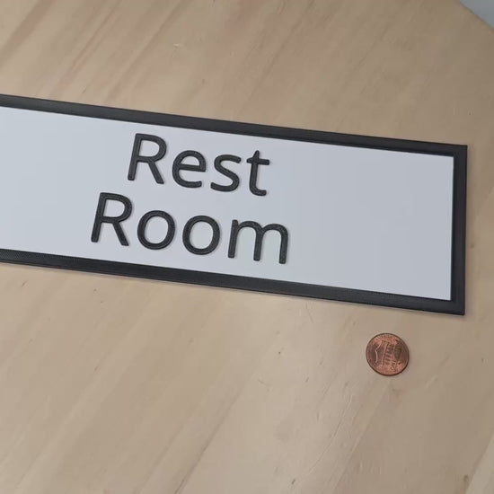 Help guests easily find the restroom with this modern “Rest Room” sign, perfect for restaurants, cafés, offices, and small businesses. This sleek 3D printed display provides a professional look while maintaining simplicity and clarity.