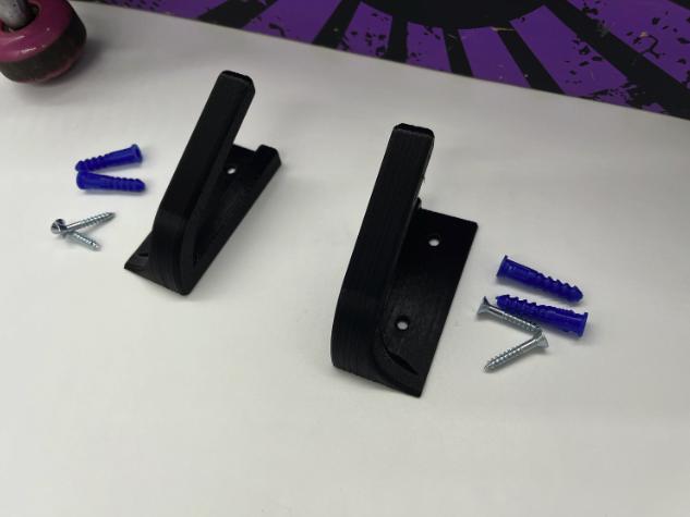 Each hook is 3D printed from durable PLA+ plastic, strong enough to hold most standard skateboards or decks without damage. The minimalist, compact design blends seamlessly into any decor—perfect for bedrooms, garages, shops, and studios.